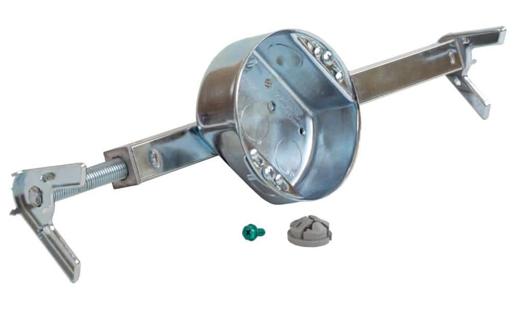 Commercial Electric 4 In. Round 1-1/2 In. Deep 15.3 Cu. In. Metallic Ceiling Fan/Light Fixture Box And Brace Kit For Old/New Work