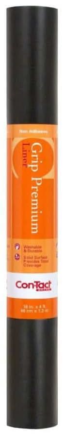 The non-adhesive Con-Tact Solid Grip 48 in. x 18 in. Black Drawer/Shelf Liner provides gripping action to stay in place. The vinyl liner gives surfaces a smooth, neat appearance. Color: Black