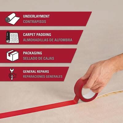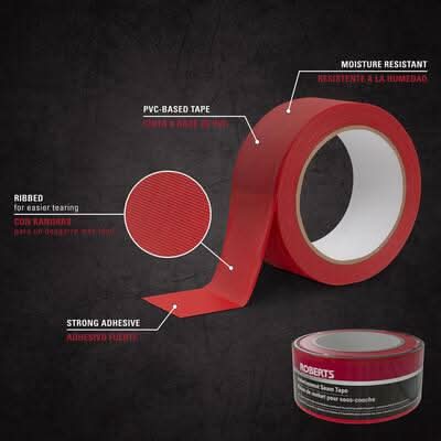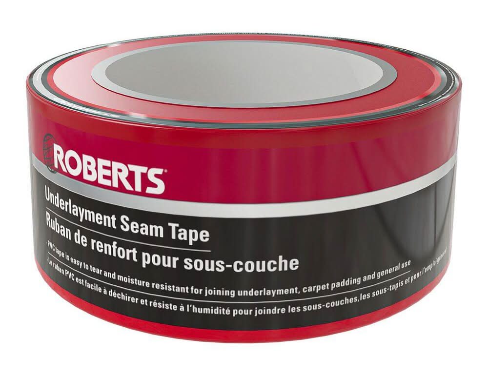 The ROBERTS Underlayment Seam Tape is used for joining underlayment seams under floating floors and for repairing rips during underlayment installation. Moisture resistant to better protect flooring from moisture damage. This versatile tape can also be used for carpet padding seams, general repairs, sealing boxes and much more. • Color: Red • Size: 1-7/8 In