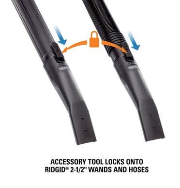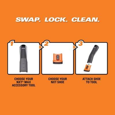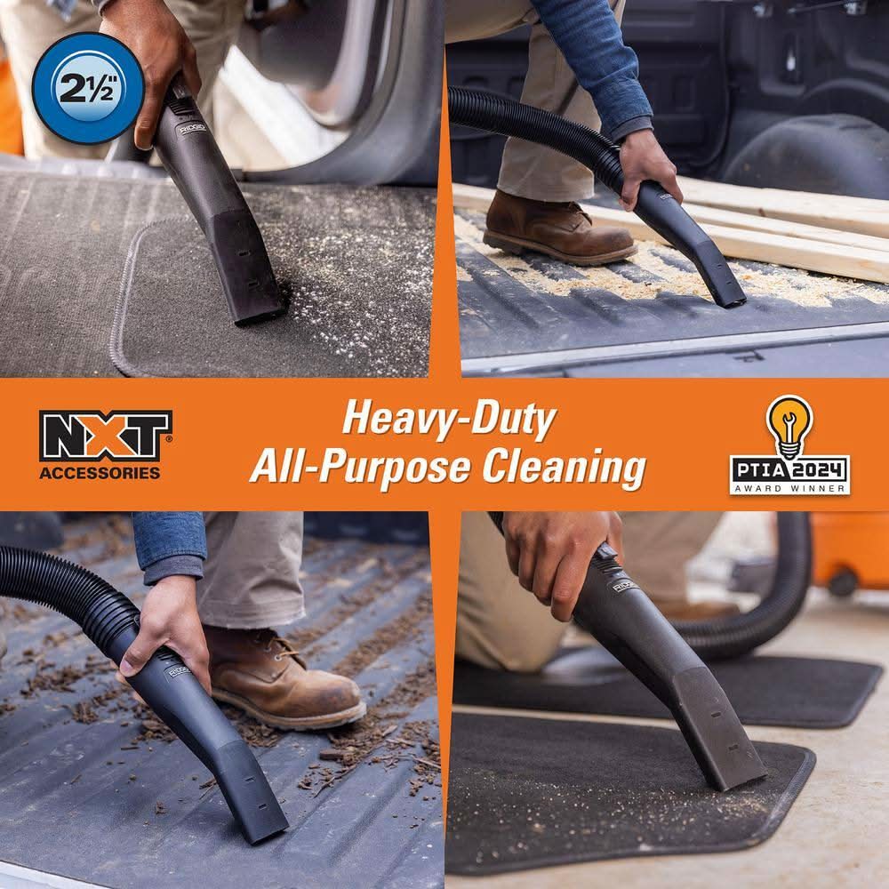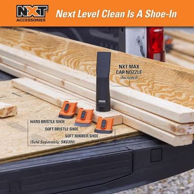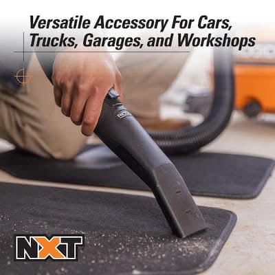 Swap. Lock. Clean...with the RIDGID NXT Max Locking Car Nozzle for RIDGID Wet Dry Vacuums that use 2-1/2 in. accessories. Part of the NXT Accessory Swap & Lock Attachment System-an upgraded ecosystem of customizable wet dry vac accessory tools with swappable shoes-the NXT Max Car Nozzle helps you clean truck beds, vehicle trunks, and more. When paired with NXT Shoes (SK0300; sold separately), the Car Nozzle adapts to your needs, changing debris pick up and where you can clean depending on the type of shoe attached to it. The RIDGID NXT Max Car Nozzle has a slim profile to get into low-angle areas of your vehicle. The NXT Max Car Nozzle is great for general, all-purpose cleaning of car upholstery, vehicle messes, and jobsites. To use the Car Nozzle with an NXT Shoe, slide the Car Nozzle Shoe onto the tool and click it in place. To remove, hold the button and slide the shoe off. RIDGID NXT Max Accessories are designed for heavy-duty cleaning, improved productivity, construction site cleanups, emergency messes, and more. For removing tough debris on rough surfaces, gentle cleaning of finished surfaces, or collecting debris from carpeted spots, use the RIDGID NXT Max Car Nozzle Shoe Kit (SK0300; sold separately). Additional NXT Max Accessory Tools and Shoes are available for other cleanup needs. Max out the cleaning power of your shop vacuum with RIDGID NXT Accessory Shoes.