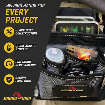MagnoGrip is a manufacturer of professional duty magnetic work gear. All products are built to satisfy the requirements of the Pro with reinforcement rivets at key stress points and double-layered reinforced polyester is used to achieve a rugged yet light-weight construction. The Magnetic features enable you to keep screws and tools close at hand. The Ma This product contains chemicals known to the State of California to cause cancer and birth defects or other reproductive harm. See: www.P65Warnings.ca.gov