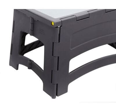 This newly designed Gorilla Ladders one-step folding step stool is ideal for all ages. The solid one-piece top provides a large, sturdy and stable standing area and holds up to 300 lbs. This step stool's unique folding design allows for easy use and the thin profile when folded makes it easy to store in your kitchen, bathroom, laundry room or anywhere else in the home or office. Weighing just 3 lbs., this 1-step is lightweight yet extremely durable, making it perfect for all uses. Color: Gray