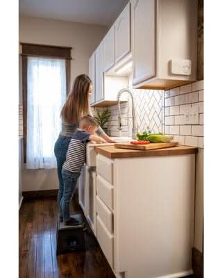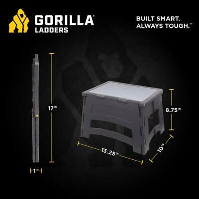 Gorilla Ladders Solid Plastic 1-Step Step Stool, 300 Lbs. Load Capacity, 7 Ft. Reach Height, Folds Under 1 In. Thin, Soft Touch Tread