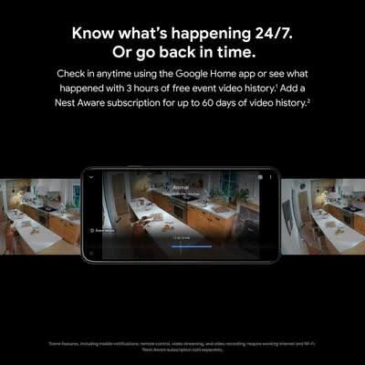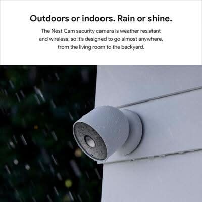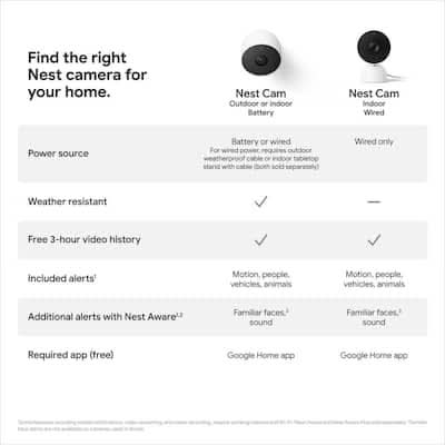 The Nest Cam security camera is wire-free and weather resistant, so it goes almost anywhere you need it, outside or in. Know when something important happens at home with intelligent alerts and take action right from the Google Home app.1 And it's easy to install yourself - no outlet or wires required. View live HD video, replay video recordings, talk to visitors, and more - all from the Google Home app. Nest Cam (battery) requires a free Google Account and is not compatible with the Nest app or the home.nest.com site.