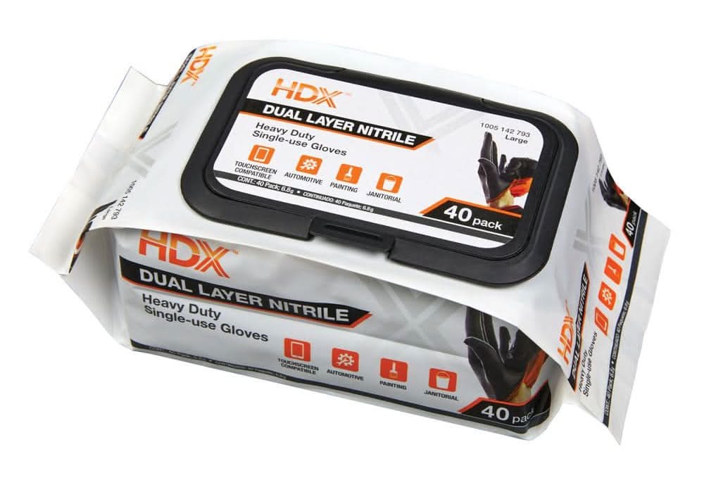 Hdx Pop-N-Go Black Disposable Heavy Duty Nitrile Gloves, Size Large (40-Count)
