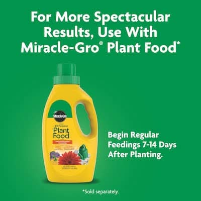 Give transplants the nutrients they need to thrive with the Miracle-Gro Quick Start Planting and Transplant Starting Solution. This starting solution improves root growth for faster blooms compared to unfed plants. Miracle-Gro Quick Start Planting and Transplant Starting Solution is ideal for all flowers, vegetables, trees, shrubs, transplants, and seedlings. To apply the solution, fill cap to the 1st line and mix with 1 gallon of water. Pour the diluted solution around the new plantings to settle soil and feed the roots. Flowers and vegetables require approximately 1 cup of prepared solution, and larger plants require several quarts of prepared solution. Repeat the application of starting solution in 7 days. For best results, begin regular feedings with Miracle-Gro plant food 7-14 days after the second feeding of starting solution. This solution is a liquid plant food concentrate and must be diluted with water before application. One 48 fl. oz. bottle of Miracle-Gro Quick Start Planting and Transplant Starting Solution provides coverage for approximately 150 sq. ft. of planting area.
