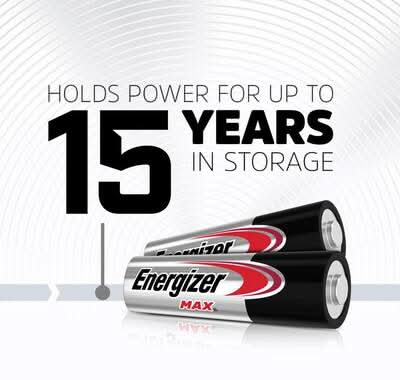 Power the devices you love with Energizer MAX Alkaline AA Batteries. These Energizer batteries fuel the technology that helps you live, work and play, whether you need remote batteries, clock batteries, or backup batteries for your child's favorite toys and games. Energizer's #1 longest-lasting MAX, these double A batteries keep your favorite devices running longer with Enhanced Energy - a more efficient cell design results in a longer lasting battery. With a shelf life of up to 15 years in storage, these long lasting batteries are ready to keep your devices operating when you need them most. Depend on the power of Energizer MAX AA Batteries to power your everyday electronics. Energizer Brands, LLC, St. Louis,MO,63141