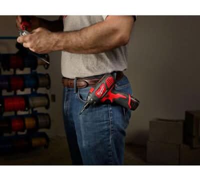 The MILWAUKEE M12 ¼" Hex Screwdriver Kit is optimized for professionals who frequently encounter precision fastening applications. The cordless hex screwdriver delivers unmatched precision, power, and portability along with a slimmer, more ergonomic grip. A variable speed trigger and 0-500 RPM provides users with unrivaled fastening control while 15+1 clutch settings to prevent over-tightening of fasteners. The tool's 175 in-lbs. of torque provide users with the power to handle tough applications. The hex head screwdriver is only 6-1/2" long and only weighs 2.0lbs. Its compact, lightweight and durable design gives users better access to tight job site spaces without sacrificing comfort. An onboard LED light and fuel gauge help increase user productivity and avoid interruptions. The hex screwdriver features two belt-clip positions for both left- and right-handed users and one-handed bit changes for maximum ease-of-use. The REDLITHIUM Battery Pack provides more work per charge and more work over pack life than the competitors. In addition to the tool, the kit includes two M12 REDLITHIUM Batteries, one M12 charger, and a contractor bag. • Color: Red-black • Size: 1/4 in