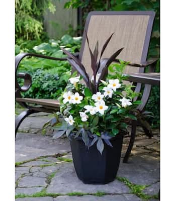 Rio is a bush-type Dipladenia which is beautiful, durable and low-maintenance. Trumpet shaped flowers stand out atop shiny green foliage. Bred specifically for garden performance, Rios are non-stop bloomers for planters, garden beds and hanging baskets. Very little watering required. With built-in water storage in the form of tubers, Rios store water beneath the soil. Rios enjoy 4 plus hours of Sun daily but will also perform well in part-shade. No deadheading required, blooms will fade and fall off. Refer to plant tag for additional care. Our 1Qt Rio is ideal for landscape and DIY container gardening. Fall in love with the beauty and ease of Rio. Relax it's Rio. • Color: White blooms • Size: 1.5 Pt