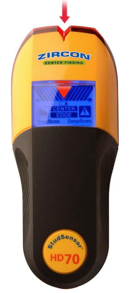 The StudSensor HD70 center-finding stud finder adds CenterVision technology to simplify and enhance stud detection. The HD70 locates both the center and edges of wood and metal studs in a single pass, making it easier and faster to finish your project while still ensuring precision. Like the HD55, this tool is equipped with two scan modes to scan through one layer of drywall up to 3/4 inch deep or through two layers with DeepScan mode. Ideal for locating studs through drywall or joists in wood flooring and subflooring, the HD70 features WireWarning. Detection to alert you to live, unshielded AC wiring, promoting safety as you scan.