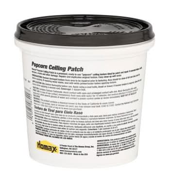 Homax Popcorn Ceiling Patch is a premixed, ready to use popcorn ceiling texture ideal for patch and repair of stained, scraped and damaged acoustic ceilings. It contains acoustic popcorn ceiling texture with polystyrene chips for an invisible repair. Applies in seconds with no mess. Easy to blend texture seamlessly into the original ceiling surface. It conceals holes, scuffs, scrapes, cracks and other damage. Repairs and duplicates original texture. Handy 1 qt. size is perfe Cancer - www.P65Warnings.ca.gov