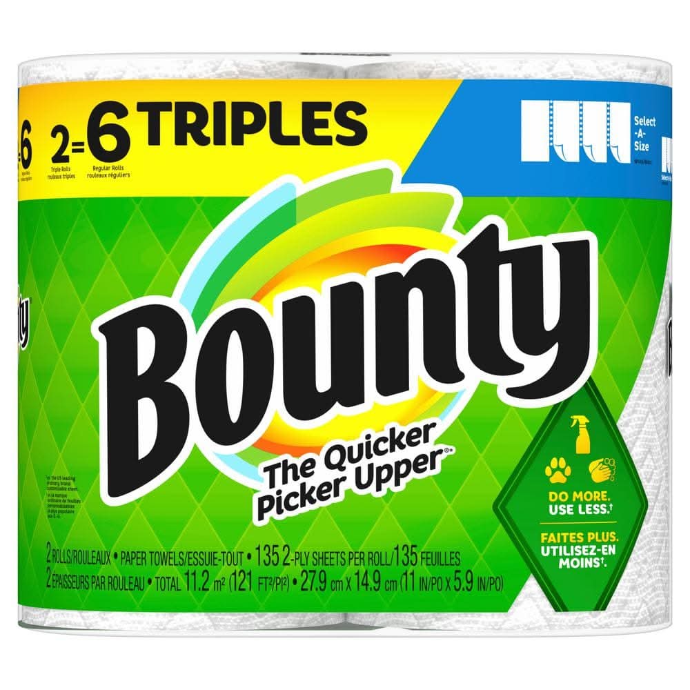 Bounty White, Select-A-Size Paper Towels (2 Triple Rolls)