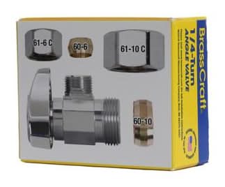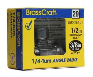 BrassCraft 1/2 in. Nominal Compression Inlet x 3/8 in. O.D. Compression Outlet 1/4-Turn Angle Valve controls water flow to household plumbing fixtures - faucets, toilets, dishwashers, icemakers, washing machines, etc. The angle valve is most often used where the water pipe enters the room from the wall. With a 90° turn of the valve handle, you are able to stop the flow of water leading to the plumbing fixture, allowing for maintenance and repair without shutting off the water to the entire home.