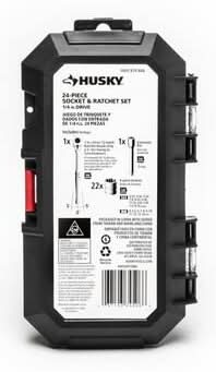 The Husky 24-piece 1/4" Drive Ratchet SAE/Metric Standard Socket Set is forged from chrome alloy steel for outstanding durability and strength. The 22 different sockets allow you to tackle a wide range of basic fastening or repair projects. This Husky set is ideal for any garage or your home workshop. WARNING: Cancer risk and reproductive harm from exposure to DEHP (di-2-ethylhexyl phthalate). See www.P65Warnings.ca.gov. Size: 1/4 In