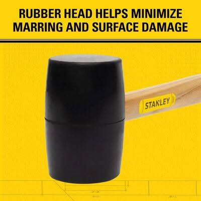 The Stanley 16 oz. Rubber Mallet features a durable 11 in. hardwood handle offering a firm and comfortable grip. The bounce resident rubber head is perfect tool for safely striking while protecting your finishing surfaces on any project. Rubber head is black in color.