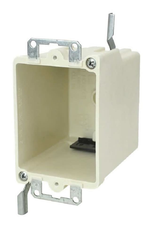 This single Gang 18 cu. in. Switch or Receptacle Box is suitable for use in old work applications. Includes leveling ribs that position the face of the box parallel to the wall surface. This premium box features fiberglass construction, is UL listed and carries a 2-hour fire rating.