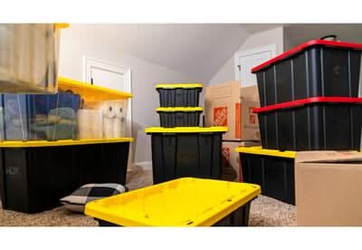 Hdx 57 Gal. Tough Storage Tote In Clear With Yellow Lid