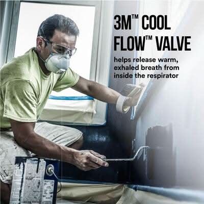 Let's face it -paint odors can be distracting. That's why we created the 3M Cool Flow Valve Particulate Respirator 8577 for Paint Odor. Designed with the pro in mind, this respirator, equipped with a carbon layer, helps filter out airborne particles plus nuisance levels of organic vapors found in certain paint or adhesives while helping provide a comfortable, customizable seal. Equipped with a Cool Flow valve, this respirator helps reduce heat build-up inside the respirator, enhancing your comfort during longer jobs. So, whether you're painting a home or spraying stucco, try the comfortable protection of the 3M Cool Flow Valve Particulate Respirator 8577 for Paint Odor. WARNING: This respirator helps protect against certain particles. Misuse may result in sickness or death For correct use, consult supervisor and User Instructions or call 3M in U.S.A. at 1-800-247-3941. In Canada, call 1-800-267-4414.