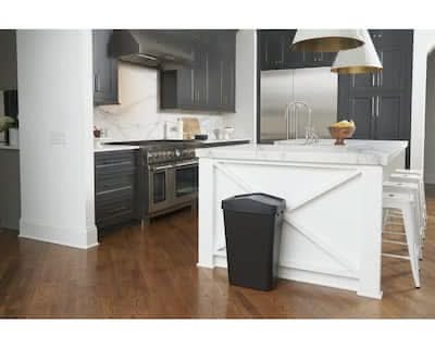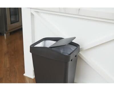 The Rubbermaid 12.2 Gal. Swing Top offers a convenient waste disposal solution that complements any space in your home. It features a domed lid that swings open and closed easily to manage waste and mitigate any odors. The curved design and matte black finish complements any area in your home and is easy to keep clean with everyday cleaners. Color: Black
