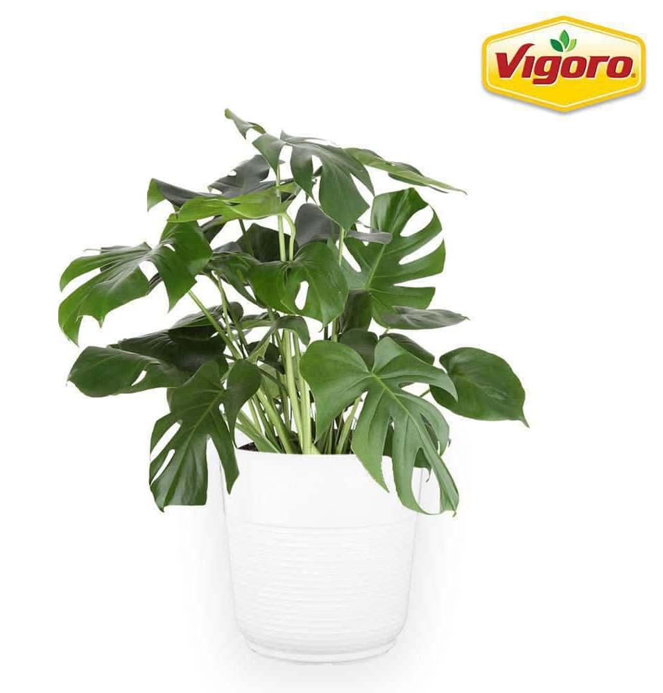 Monstera may be the perfect houseplant for you if you're looking to create a big, bold, tropical feel in your home. While young, this houseplant has a dense, bushy shape, but as it grows, it wants to vine out. You can keep it bushy with regular pruning or let it climb up vertical support (such as fishing line fastened into the ceiling), for a decidedly bold and tropical look. Vigoro products invigorate lawns and gardens by delivering total care solutions. Whether novice or expert, urban or suburban, gardeners who choose from our wide assortment of Vigoro products are rewarded with high-quality results at the ultimate value. Vigoro will help you build bigger, bolder, better gardens and lawns. • Color: White • Size: 10 In