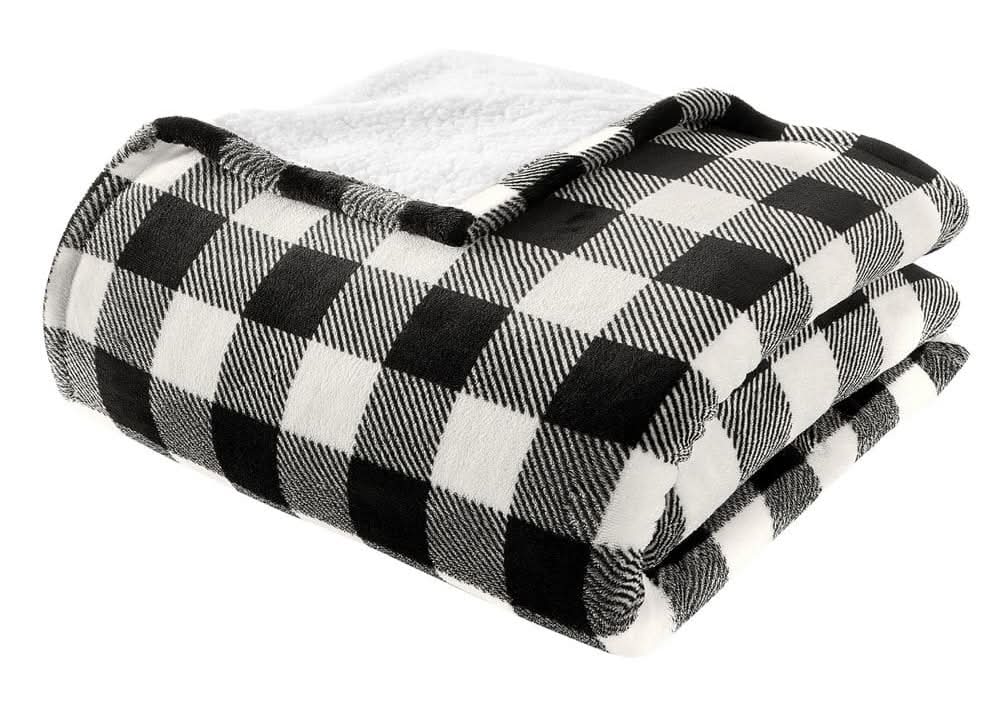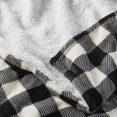 Home Decorators Collection Plush Black Buffalo Check Sherpa Throw Blanket