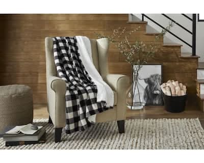 Relax in your space with this Plush Black Buffalo Check Sherpa Throw Blanket. The sherpa material provides extra warmth for you. Use this on your bed or keep it near your sofa. It's simple to clean and maintain. Size: 50 in. x 60 in.