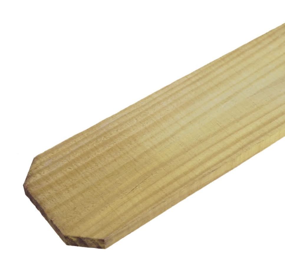 The 6 ft. x 5-1/2 in. x 5/8 in. Dog-Ear Picket is made from pine for durable, long-lasting performance. This all-wood picket is 6 ft. long. It has a classic dog-ear pattern that can add charm to almost any outdoor space. Drilling, sawing, sanding, or machining wood products can expose you to wood dust, a substance known to the State of California to cause cancer. Avoid inhaling wood dust or use a dust mask or other safeguards for personal protection. For more information go to www.P65Warnings.ca.gov/wood. Size: 5/8in x 5 1/2in x 6 ft