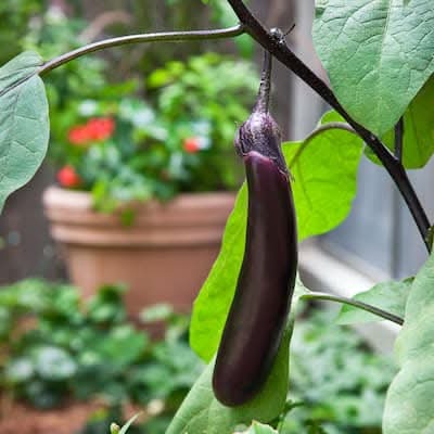 Plant produces loads of long, slender, dark purple eggplants with thin skins and mildly sweet flavor. An excellent variety for roasting, grilling, and stir-fries - chefs love it! Very productive plant grows well in containers. Grows best in warm weather, but will continue producing through to the first frost. Pack size: 6