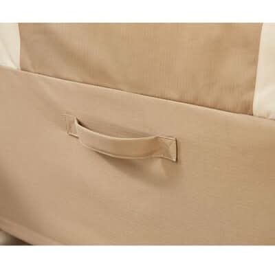 Ready your patio furniture for inclement weather or a change in seasons with this set of two Hampton Bay lounge chair covers. The thoughtful design and generous dimensions work with chairs boasting thick cushions and deep seats, providing a layer of protection from the elements. A neutral beige color scheme offers a timeless look, and the UV-protected polyester material resists water, mildew and fading. Integrated handles make moving your furniture easy. These Hampton Bay lounge chair covers boast a simple setup for quick, secure placement. Color: Beige