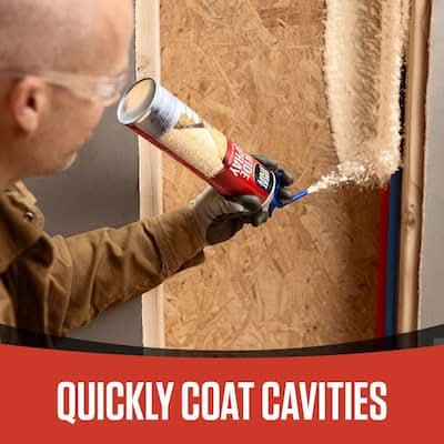 GREAT STUFF Wide Spray is a closed cell insulating foam sealant that coats and air-seals seams, joints, large gaps, and irregular surfaces (up to 6 in. wide). Wide Spray provides broad coverage, fast application and reach, allowing for rapid air sealing over large surfaces, in tight spaces, hard-to-reach areas, and adheres to vertical and horizontal surfaces. Wide Spray comes with two 18 oz. cans and can cover up to 60 linear feet (at a 4 in. wide band). The kit includes 4-nozzles: 2-blue Fan nozzles for broad coverage and 2-white Cone nozzles for more precise sealing and covering hard-to-reach areas. The 1-component formulation means no mixing and requires no respirators or coveralls while spraying. GREAT STUFF Wide Spray expands to take the shape of cracks and voids and forms a durable, airtight and water-resistant bond that eliminates unwanted airflow and helps reduce condensation.