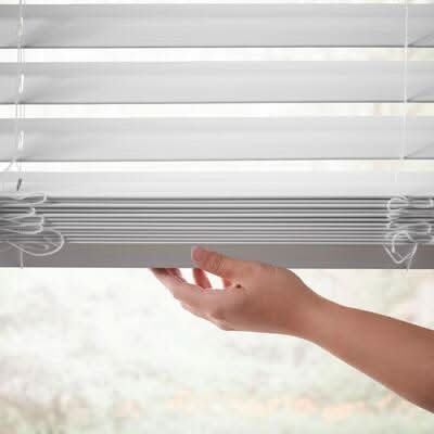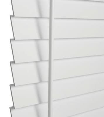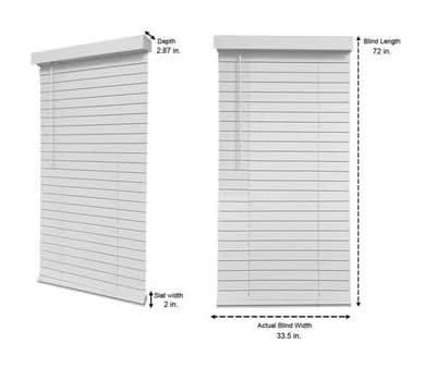 Design meets functionality with the White Cordless Room Darkening 2 in. Faux Wood Blind by Home Decorators Collection. The cordless design has a "no cords" feature. Offering a clean look by eliminating dangling lift cords. Our 2 in. Cordless Faux Wood Blinds come with a matching 2.5 in. standard valance and features a unique embossed wood grain texture that gives the appearance of real wood. These blinds offer a classic look that will complement any decor. The room darkening faux wood slats are made from heat and moisture resistant material, making the blinds ideal window treatments for bathrooms, kitchens and garages. The additional insulation to your windows can add energy saving value to your home. For maximum light and privacy control, rotate the slats downward to ensure proper closure. • Color: White • Size: 33.5x72 in