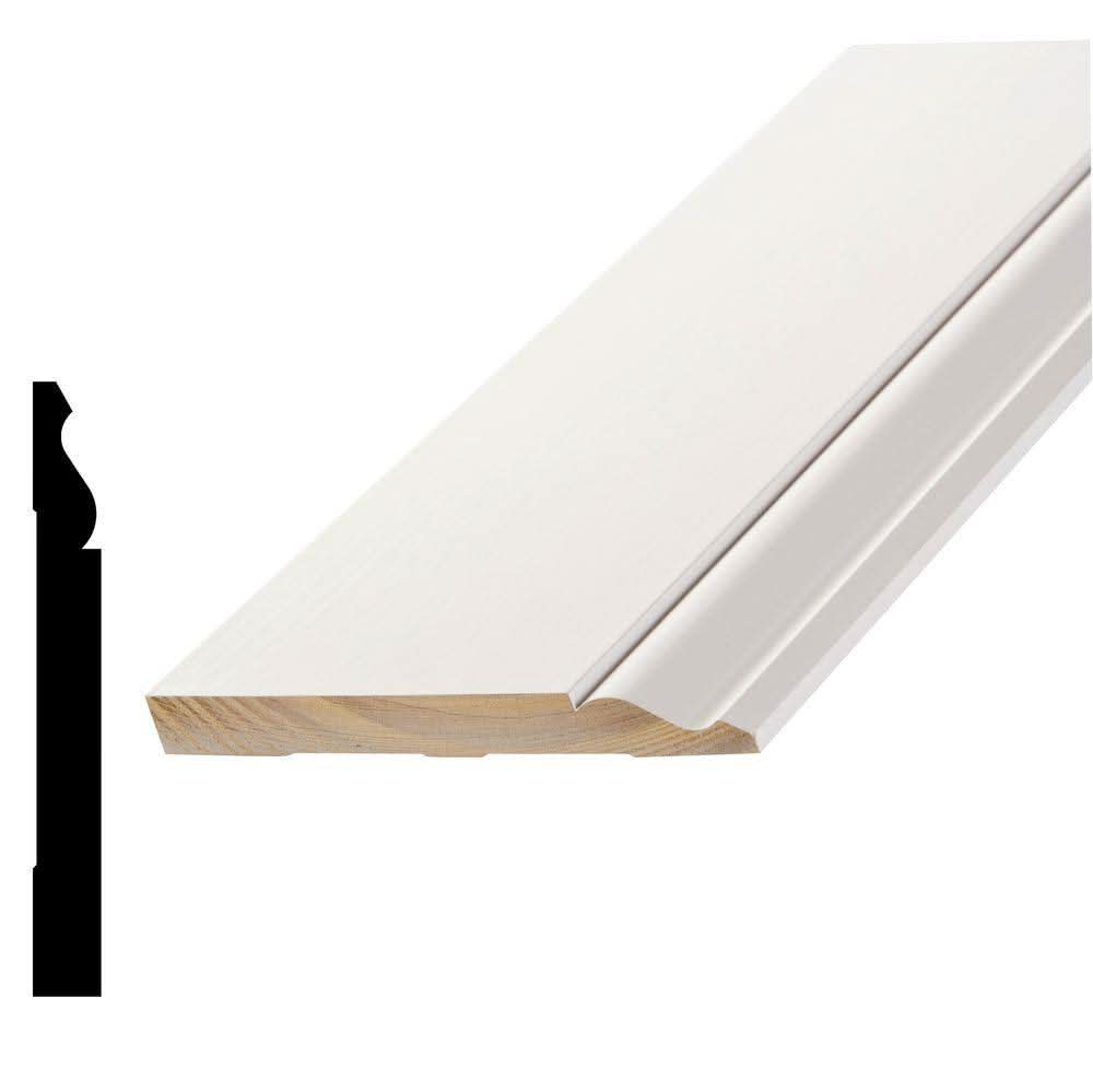 Alexandria Moulding 9/16 X 5-1/4 In. Primed Finger-Jointed Pine Wood Baseboard Moulding