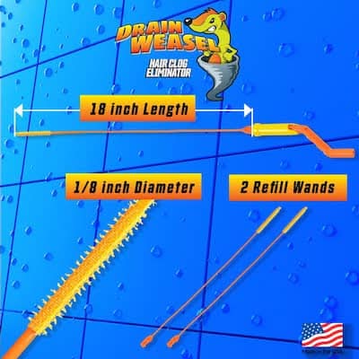 The Drain Weasel Disposable Refill Wands are an economical D-I-Y choice for clearing slow running bathroom drains. Simply load a refill wand into the Drain Weasel Handle (sold separately) and you're ready to tackle tough bathroom hair clogs. Each Refill Wand includes FlexiSnake's proven micro hook technology that grabs hair clogs on contact. After use, the Refill Wands are easily removed from the reusable handle for disposal. Clean Hands. Clean Drain. Note: The Drain Weasel Refill Wands are designed to remove clogs in the first 18 in. of the drain opening where a majority of bathroom hair clogs are located. It will not be effective for other types of drain problems. Size: 1.5 ft