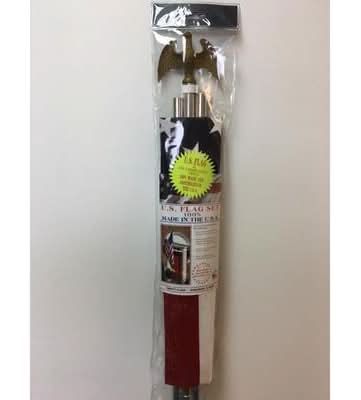 Add a patriotic touch to your home with the Seasonal Designs flag kit. Included is a 3 ft. x 5 ft. poly-cotton United States flag, a three-section 6 ft. pole, a bracket, an eagle top and installation hardware. The included metal pole that is rust resistant. Size: 3x5 in