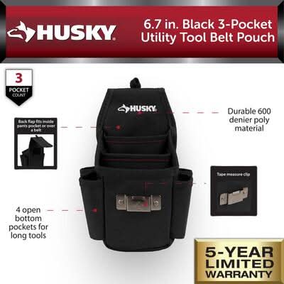 Husky 6.7 In. Black 3-Pocket Utility Tool Belt Pouch