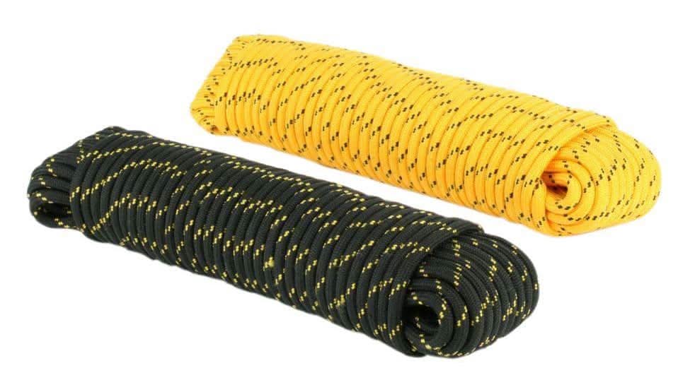 The Everbilt Polypropylene general purpose Rope has excellent handling characteristics. Composed of Nylon and Polypropylene mix which gives it good durability. The Rope is an acid, mildew, rot, oil and gas resistant. WARNING: Knots reduce the strength of the rope up to 50%. Do not use this product for overhead lifting, support of human weight or athletic equipment or other situations where personal safety or valuable property can be endangered. The working loads shown should never be exceeded. Shock (stress, jerk) conditions can reduce working loads by as much as 33%. Never stand in line with rope under tension; such rope, particularly nylon rope, may recoil (snap back). Never use this product to secure large flat surfaces or objects. All ropes should be replaced if signs of wear, such as broken fibers are apparent. Misuse can result in serious injury or death. Color: Assorted