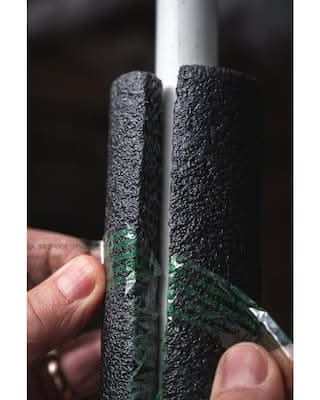 Choose Everbilt's Foam Self-Seal Pipe Insulation for a cost-effective way to enhance energy efficiency while safeguarding your pipes from freezing or condensation. This pipe insulation is for use with 1/2 in. copper/PEX/CPVC and 3/8 in. iron/PVC pipes. With its pre-slit, self-sealing design, installation is a breeze-simply wrap the insulation around your pipes, remove the protective strips covering the pre-applied adhesive, and apply pressure to the seam to seal. Made from high-quality, durable foam, this insulation provides an R-value of 3.3 and is fire-rated for added safety and peace of mind. These 6 ft. insulation sticks can be cut to size. Insulate today for a worry-free tomorrow. Size: 1/2 in X 6 ft