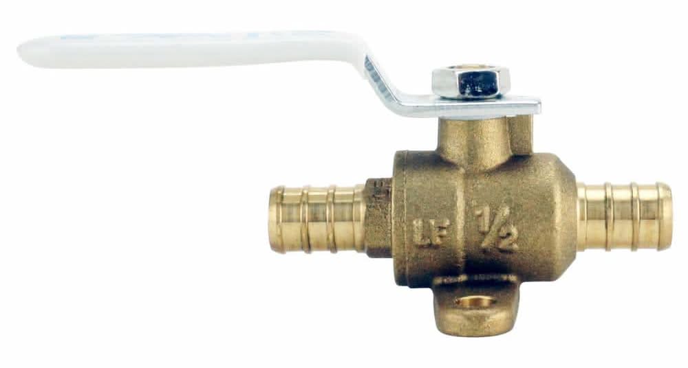 Apollo 1/2 In. Brass Pex-B Barb Ball Valve With Drain And Mounting Pad