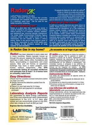 LABTECH Radon Ok Radon Detection Kit offers a proven short-term method that provides professionals and residents with a quick assessment of a dwellings mode level. This kit is 3-easy do it yourself steps. It can be used for real estate transaction screening.