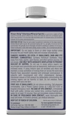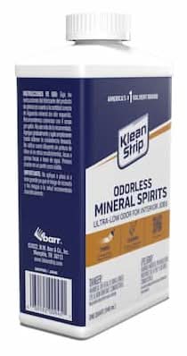 For Pro's and DIY'ers, Klean-Strip is the leading brand of solvents, thinners, removers, and cleaners that are dependable for reliable results. Klean-Strip Odorless Mineral Spirits is a premium, highly refined solvent formula that effectively thins and blends well into oil-based paint, stain and varnish. It is very low odor, dries with minimal residue and is an excellent cleaner for brushes and paint equipment. Keep out of reach of children. Not for sale in California.