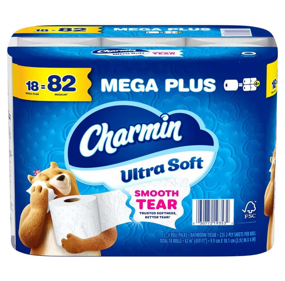 Charmin Ultra-Soft Smooth Tear Toilet Paper Rolls (18 Mega Plus Rolls)