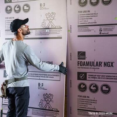Owens Corning FOAMULAR NGX (Next Generation Extruded) insulation, is produced with a proprietary blowing agent that delivers a 90% reduction to Global Warming Potential (100 year) compared to current FOAMULAR. The new formulation and production process meets or exceeds new, more stringent regulatory standards without sacrificing product performance and offers a comprehensive line of products in a wide choice of sizes, thicknesses and edges with a Lifetime limited warranty for the life of the home or building. Foam insulation boards are easy to handle, score, cut and install & no special tools are needed. Foam insulation products can be used on wood, steel framing or concrete walls. FOAMULAR NGX resists moisture and retains R-value even after exposure to standing water and wet soil. Owens Corning FOAMULAR NGX insulation offers all the physical properties and ease-of-use you expect from Owens Corning FOAMULAR insulation with industry-leading sustainability.