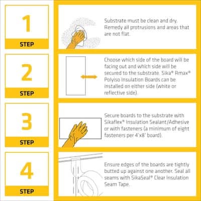 Sika Rmax Pro Select R-Matte foam insulation boards are versatile, multi-application boards with a durable white-matte (non-glare) reinforced aluminum facer on one side and a reflective reinforced aluminum facer on the reverse. This thermal insulation is designed for use in Stud walls, cavity walls, masonry walls, exterior stucco, re-siding, vaulted ceilings, attics/crawl space, concrete foundations, exterior ducting, and limited roofing. This Warning: Cancer and Reproductive Harm - www.p65warnings.ca.gov