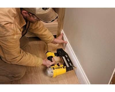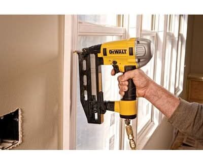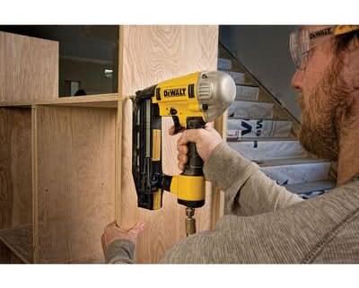 The DEWALT DWFP71917 Precision Point Finish Nailer is ideal for interior trim, baseboards, cabinetry, door and window casings, furniture, crown molding, hardwood flooring, stairs and paneling. Adjustable belt hook. Kit Includes: Nailer, 1/4 in. fitting, carrying case and extra no-mar tips. Cancer and Reprodutinve Harm - www.P65Warnings.ca.gov