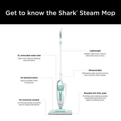 Effortlessly clean with the power of steam. With just water, quickly cut through stuck-on messes - no chemicals and no residue. Designed with ease in mind, the Shark Steam Mop is lightweight and maneuverable, allowing you to get into tight spaces. Its large water tank means you can clean more floor without having to stop. And when you do need to refill, the removable tank makes it easy. The Steam Mop's compact size and upright lock California Residents: Cancer and Reproductive Harm - www.P65Warnings.ca.gov Color: Blue