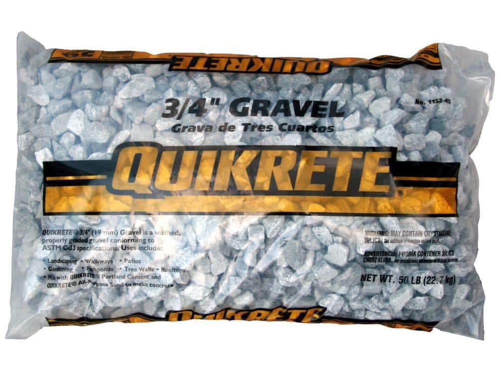 Quikrete 50 lb. 3/4 in. Gravel is a perfect general use stone that can be used in a number of different applications. It is perfect for landscaping, walkways, patios or any project where gravel of this size is needed. Quikrete 50 lb. 3/4 in. Gravel can also be used for making concrete mixes in commercial applications. WARNING: Cancer www.P65Warnings.ca.gov. Size: 3/4 in