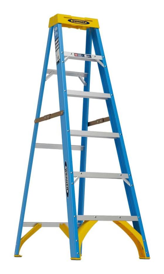 Reach high spaces and complete projects with ease with this Werner 6-ft. Step Ladder. This step ladder is perfect for use all around your home thanks to the 250 lb. weight capacity and stable, slip-resistant steps. It also features a project top to hold your tools and it's lightweight for easy transporting. Size: 6 ft