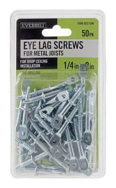 The Everbilt Eye Lag Screws for metal joists measure 1/4 in. x 2 in.. These Eye Lag Screws are specifically designed for suspended ceiling grid installations and feature a self-tapping drill point for easier installation. Packaged in a 50-piece pack for attaching ceiling hanger wire to metal joists.