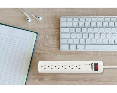 Commercial Electric 8 Ft. 6-Outlet Surge Protector, White