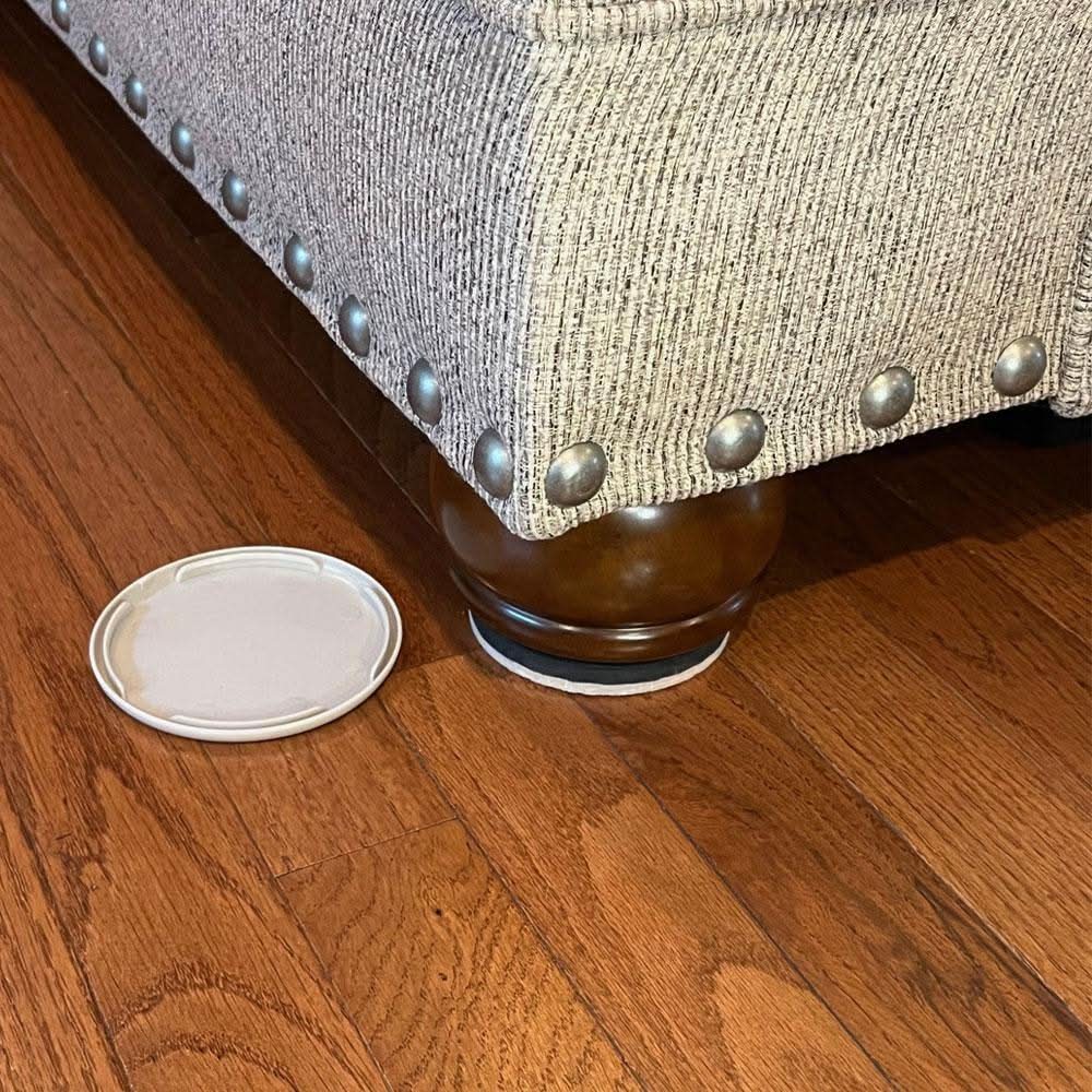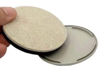 Everbilt 4.75 in. round, 2 in. 1-furniture movers, are specially designed to move heavy objects with ease on carpet and hard floors without damaging floor surfaces. The 2 in. 1-slider is made up of a hard plastic material with an inner foam cushion that can be separated, allowing for use on both carpet and hard surfaces with the same slider. Move heavy or bulky objects, on almost any surface, with ease while moving, rearranging, re-decorating and more. • Color: White • Size: 4-3/4 in • Packaging: Reusable